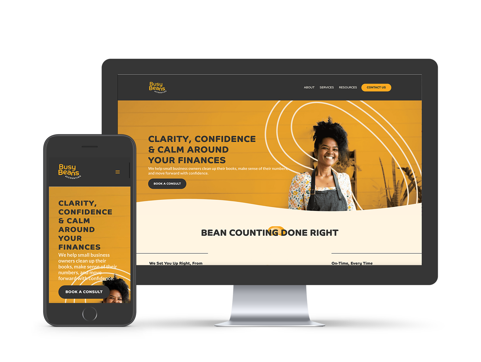 Once that foundation was established, Flying Horse Design Studio stepped in to create the visual identity and build the website that would bring the brand to life. Our challenge was to craft a playful, unexpected brand that stood apart from traditional bookkeeping firms, without losing professionalism. Busy Beans needed to feel memorable and approachable while still conveying expertise and trustworthiness.